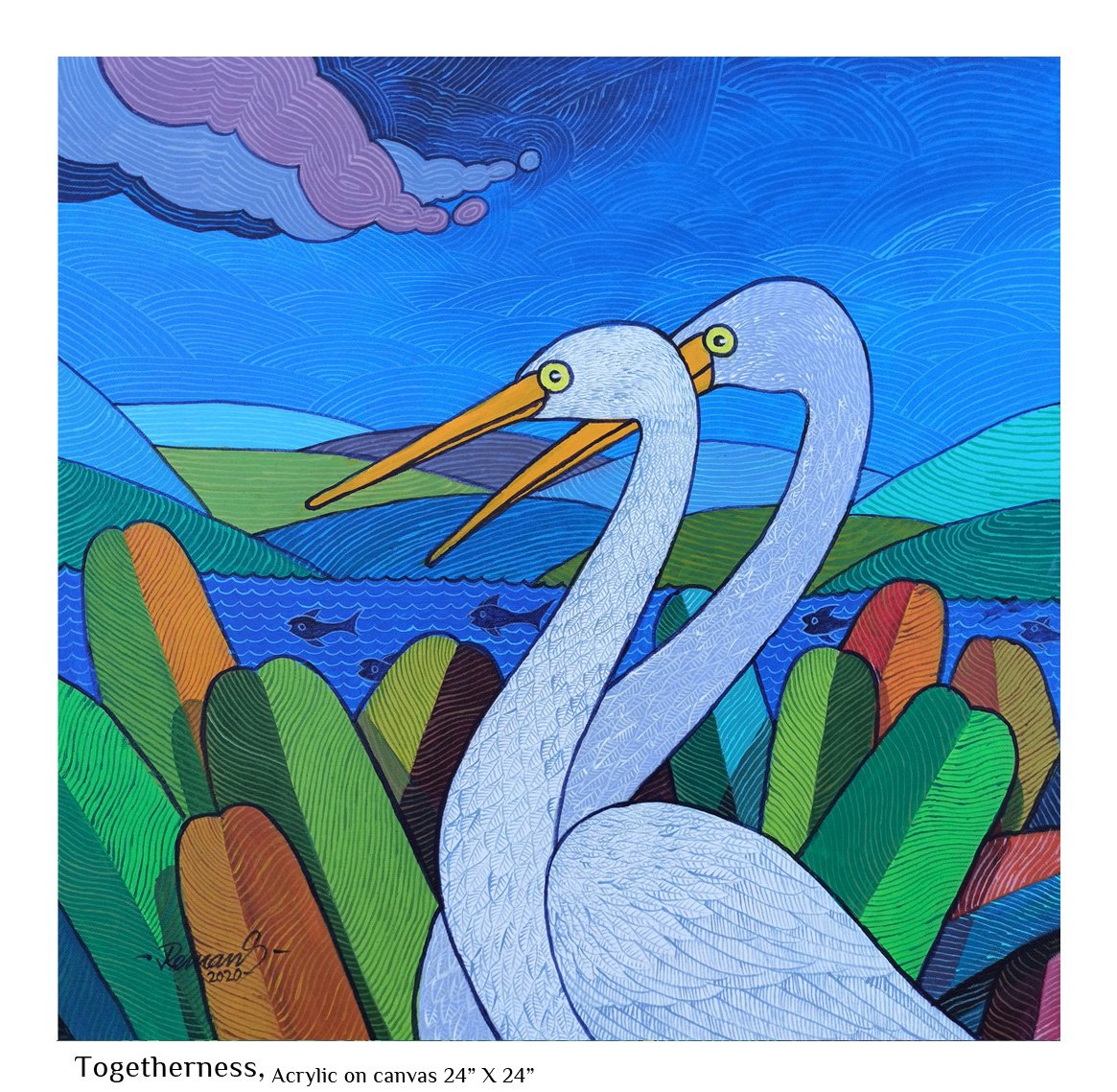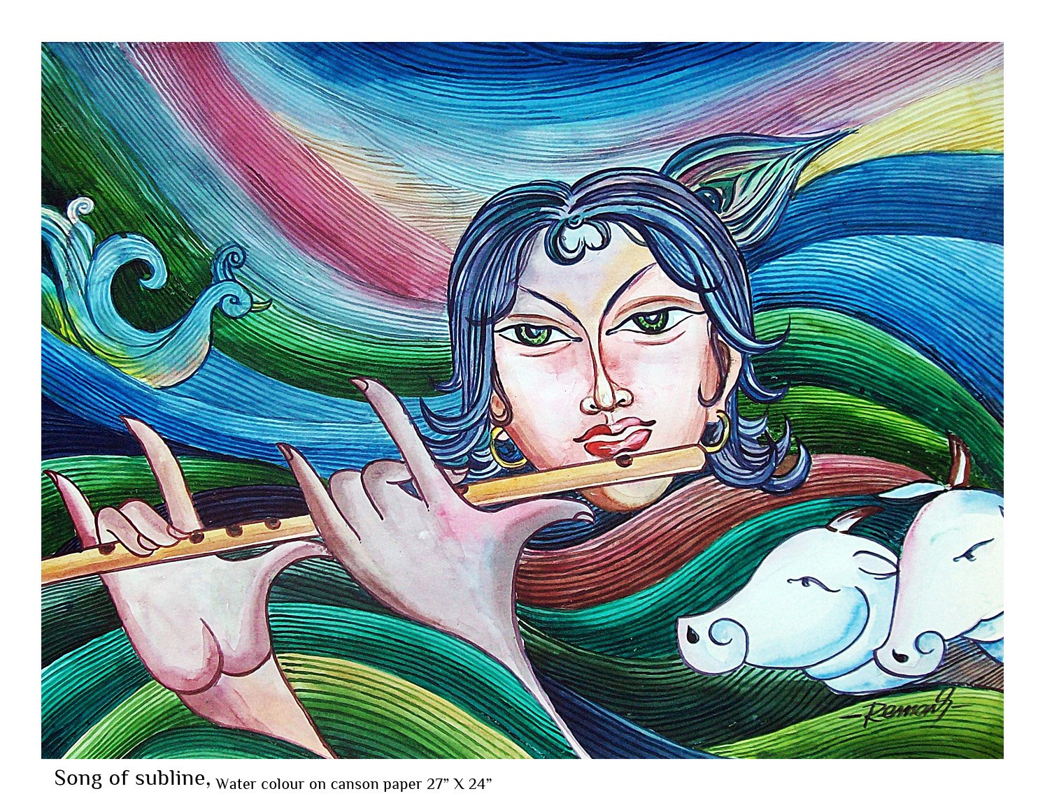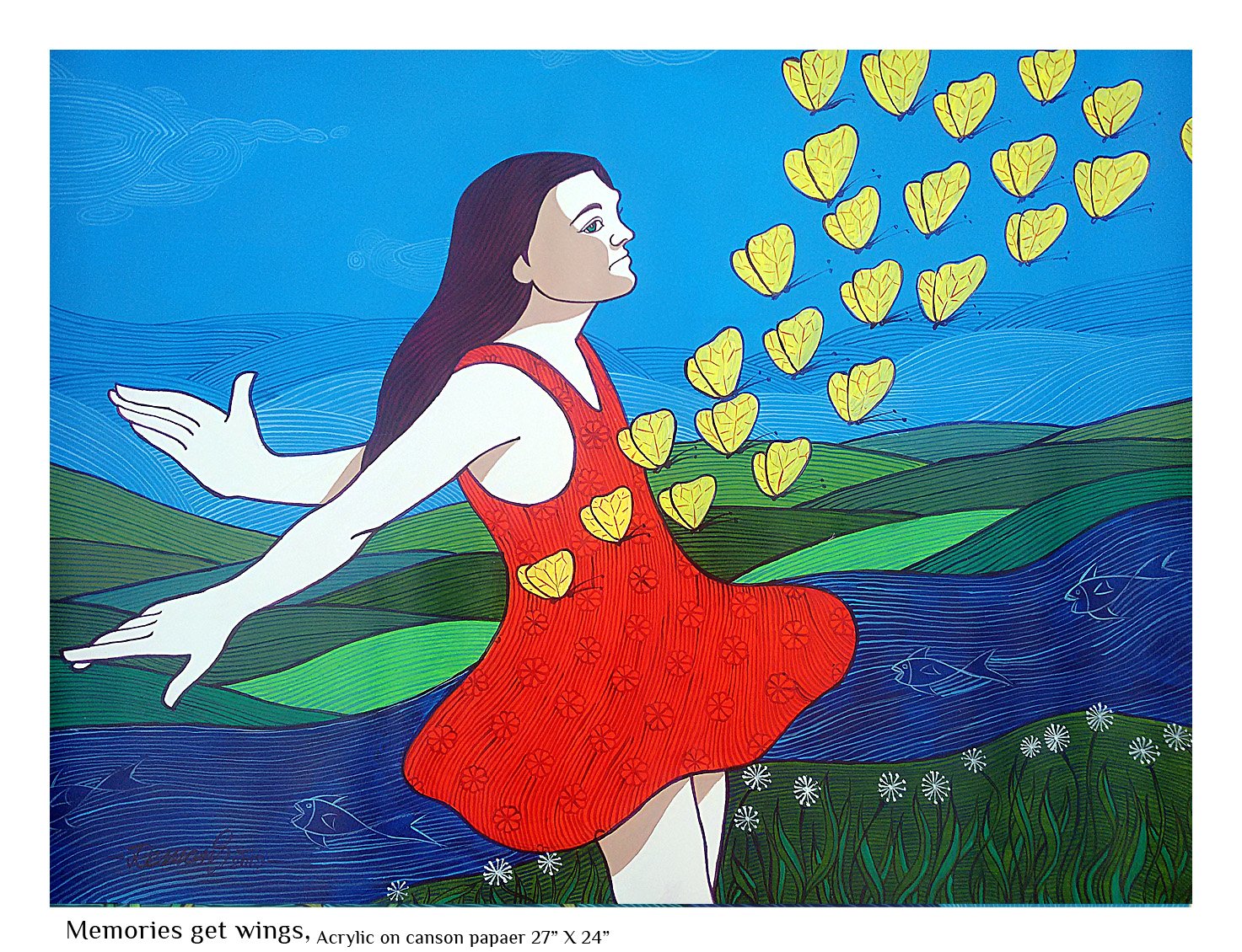 The Feminine Mystique is then an exploration of nature as exemplified in women not as a gender but as an integral aspect of life itself. Thematically, it opens up enormous possibilities and I have tried to interpret it employing common motifs that we can relate to easily. Each paining in this series reflects my idea of what constitutes the feminine mystique. Simple but sublime. That is what I seek to achieve through this.