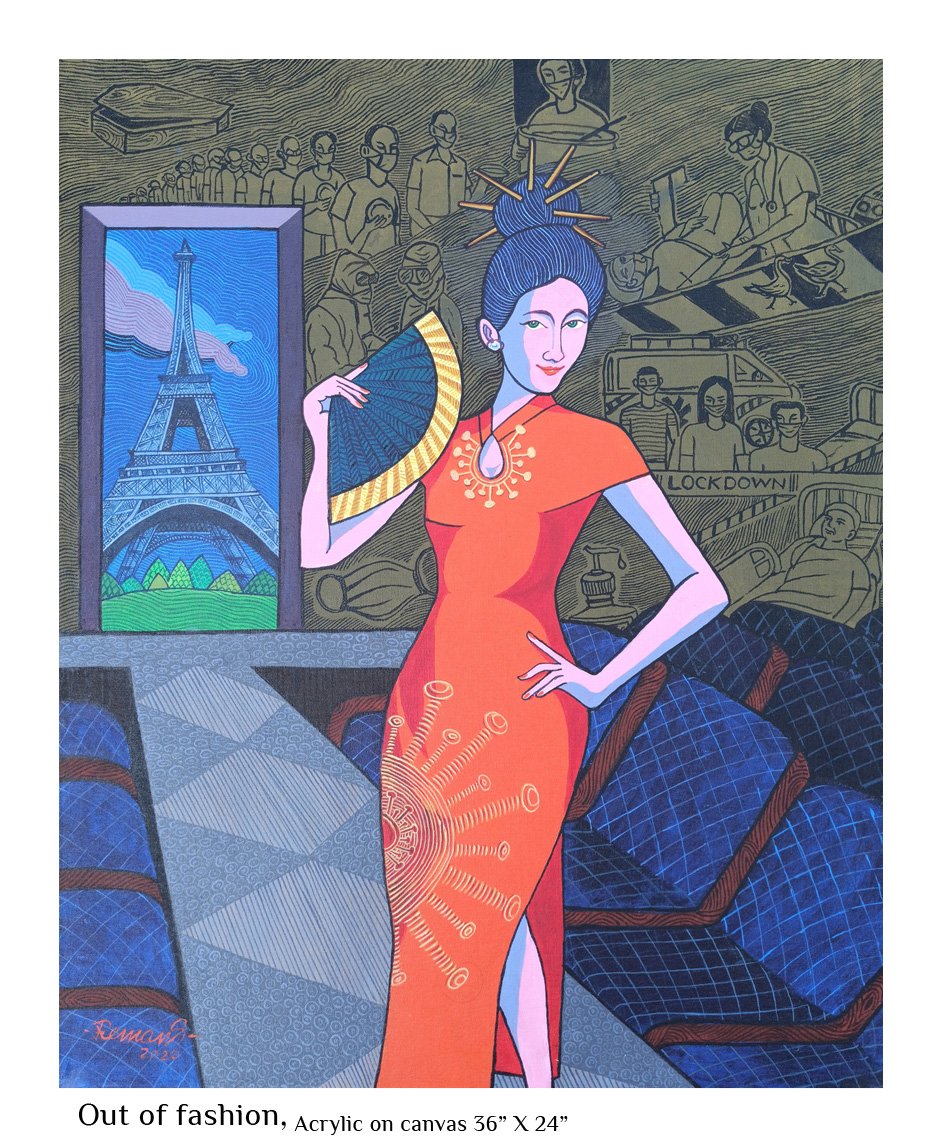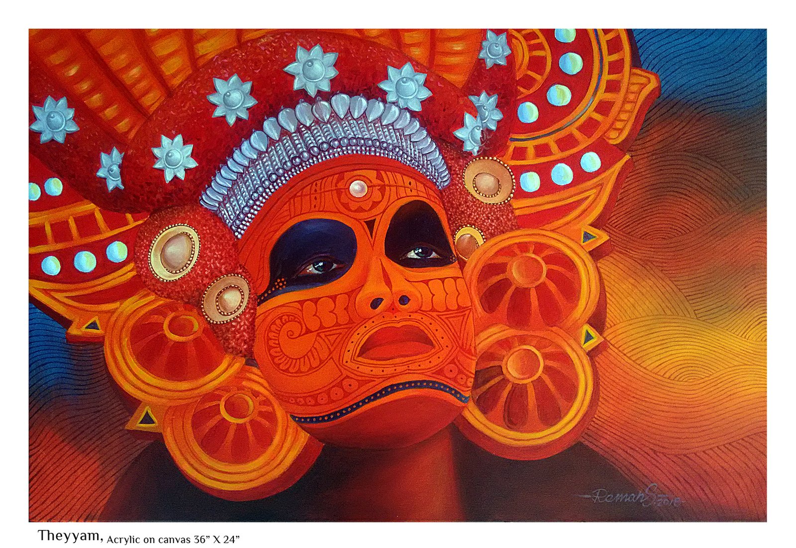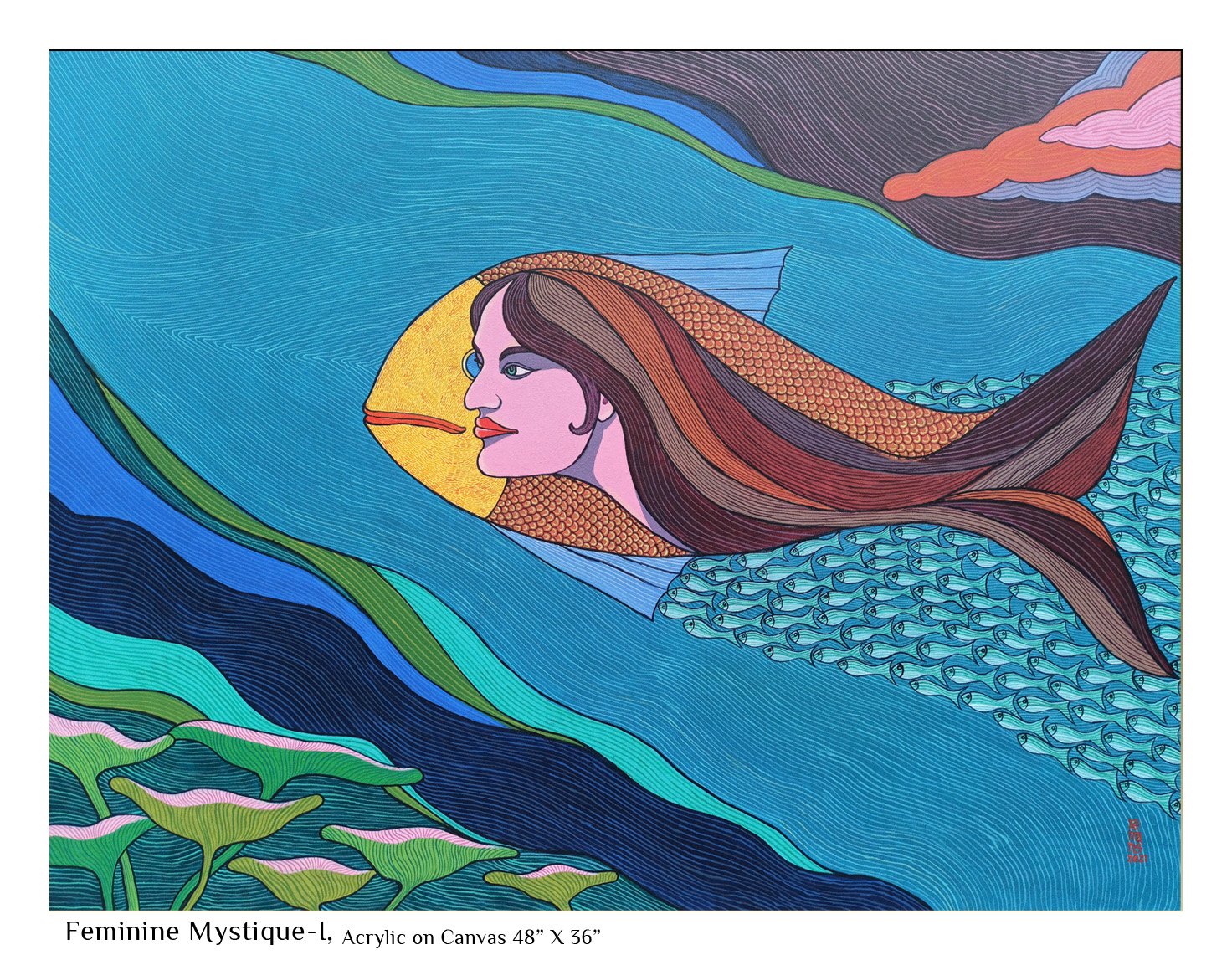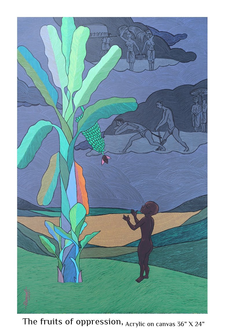 Right from an early age, nature has fascinated me. The wild energy, the fecundity, the raw power as much as the beauty, the stillness, the grace stuck a chord in me. I saw this mostly in feminine terms and as I was growing up I could relate this to that special something that women seemed to be blessed with - the strong bond with nature which men mostly are cut off from. When I began to paint, this influence was pretty mush evident not only in the choice of subject but in all aspects of my artistic endeavour, the colors, the motifs, the themes… Most of the paintings I have done that comes under the Feminine Mystique category, by deliberate choice or not, incorporate personal experiences from my growing up years that took on new meaning within the ambit of the theme.